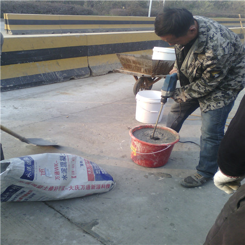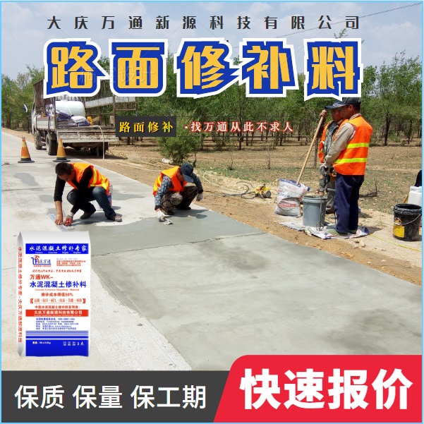 大慶萬通新源科技有限公司獨有的混凝土路面高強速補料,是水泥混凝土路面病害修復的好材料。疲勞、凍融循環(huán)、彎曲壓力、滲水和基層破壞等原因都會引起水泥路面的破損,從而帶來高昂的維護費用。與以往的剛性修補方法不同,混凝土水泥路面維修速補膠提供了一種獨特的柔性修補產品和技術,高柔性、高抗拉性,可跨伸縮縫施工和高抗壓性使得混凝土快補產品為水泥混凝土路面提供了******性的修補。傳統的剛性修補方案,如環(huán)氧砂漿和快干水泥產品,由于其自身的粘結失效,抗疲勞性低以及與原路面不同的伸縮系數,修補面會在短時間內失效或產生新的裂縫,需要反復修補,有效期短且費用高昂。大慶萬通新源科技有限公司的混凝土水泥路面維修速補膠可以隨原路面一起伸縮,移動,從而避免了粘結失效和產生新裂縫。萬通快補產品優(yōu)異的粘結性、柔韌性和高防滑性,特別適用于水泥路面的淺層粘合修補,多邊角混凝土板層修補,跨伸縮縫修補以及路面沉陷修補。萬通混凝土病害修補料針對混凝土起皮起沙、斷板裂縫、蜂窩麻面、坑槽露石子、漏筋掉皮、橋梁的掉皮漏筋快速通車使用時間長。應用萬通快補產品,施工后一天就可以恢復交通。大慶萬通新源科技有限公司的萬通水泥路面維修速補膠適用于高速公路、機場路面、農村村村通路面、廠坪、學校操場、市區(qū)公路、小區(qū)路面、橋梁、水泥路面的修補。使用萬通特快補材料修補路面可以一勞永逸! 水泥地面起砂怎么辦,混凝土修補劑混凝土地面起砂,混凝土地面修補,地面起砂怎么辦,